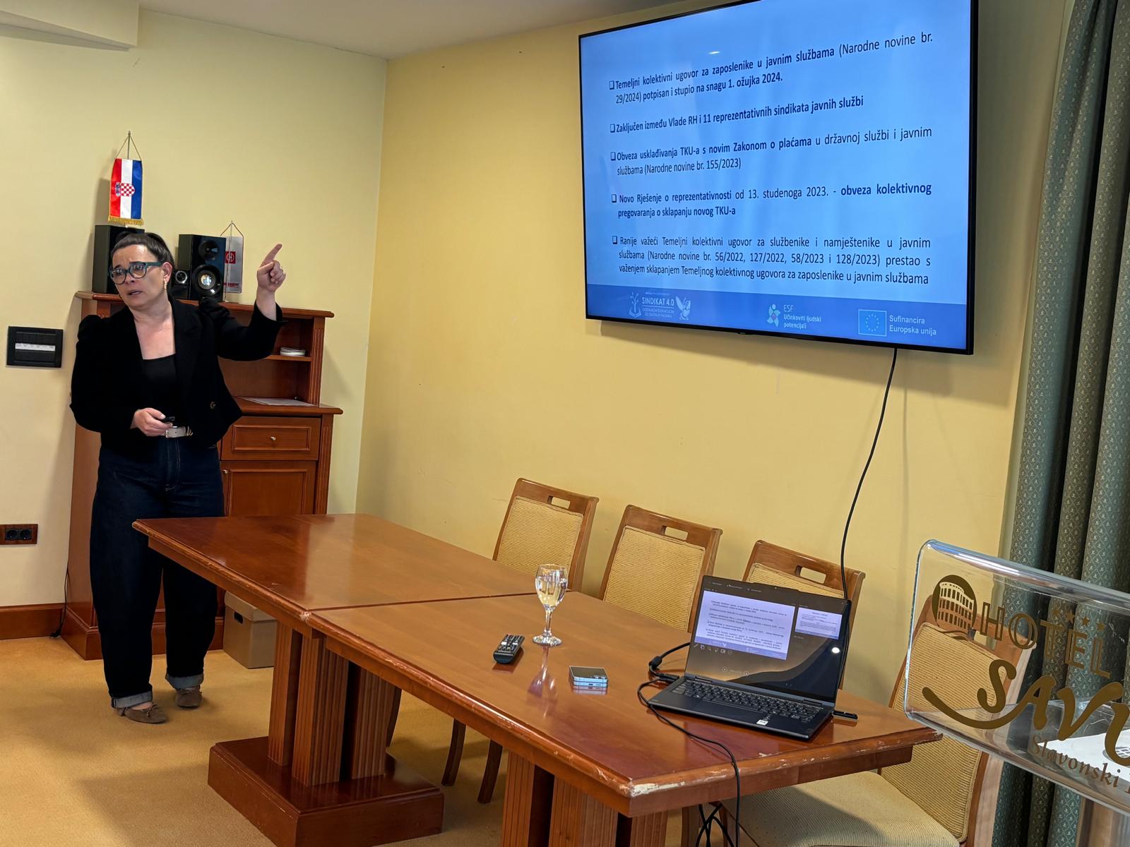 - Prava u praksi: Mirela Bojić (Matica hrvatskih sindikata) održala je detaljno predavanje o Temeljnom kolektivnom ugovoru za zaposlenike u javnim službama, rješavajući dileme oko njegove izravne primjene u javnim službama.