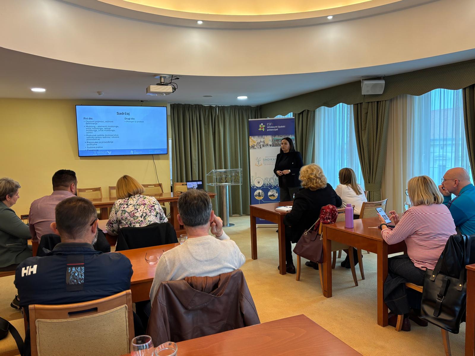 Uvod u radionicu započela je Ivana Šepak Robić (Matica hrvatskih sindikata), naglasivši stratešku važnost modernizacije sindikalnog rada te je govorila o svim aktivnostima i ciljevima projekta.
